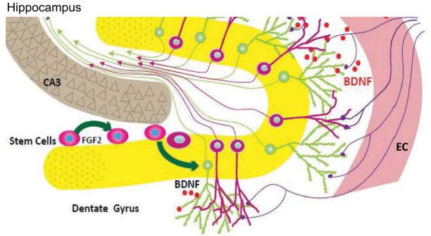 Şekilde yer alan Hipokampustaki (beynin istemli bilişsel kararların verildiği merkez) sinirler öğrenme ve hafızada kritik roller oynar. Hipokampüs dediğimiz bu ikinci beyin bölgesi, duyusal girdilere ve bilişsel süreçlere yanıt vermekle ilgili beynin diğer (serebral kortikal) bölgelerinden gelen duyusal bilgi için bir kanal görevi görür. Bu sinirlerde artan aktivite, BDNF üretimi ile sonuçlanan açlığa yanıt olarak ortaya çıkar. BDNF, sinirlerdeki yer alan yapıların (dendritlerin ve sinapsların) büyümesini ve korunmasını sağlar. Ayrıca sinir kök hücrelerinden yeni sinirlerin üretimini ve hayatta kalmasını arttırır; yeni üretilen sinirler daha sonra mevcut sinirsel devrelere entegre olarak sinaptik plastisiteyi artırır. Böylelikle oruç sırasında görülen otofaji* süreci ile birlikte Huntington hastalığı, Parkinson hastalığı ve Alzheimer hastalığı gibi nörodejeneratif bozukluklarda önleyici ve/veya koruyucu rol oynar.